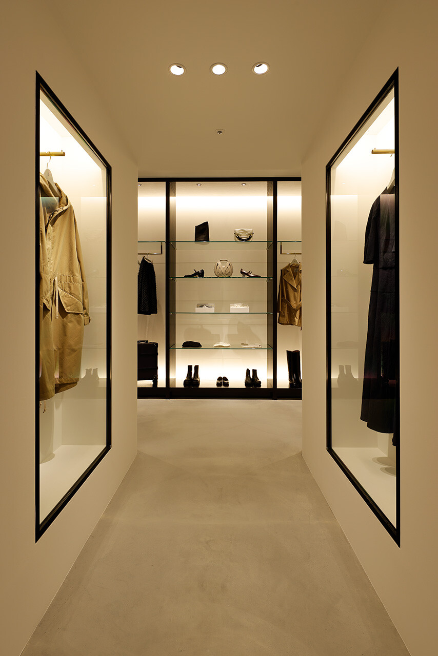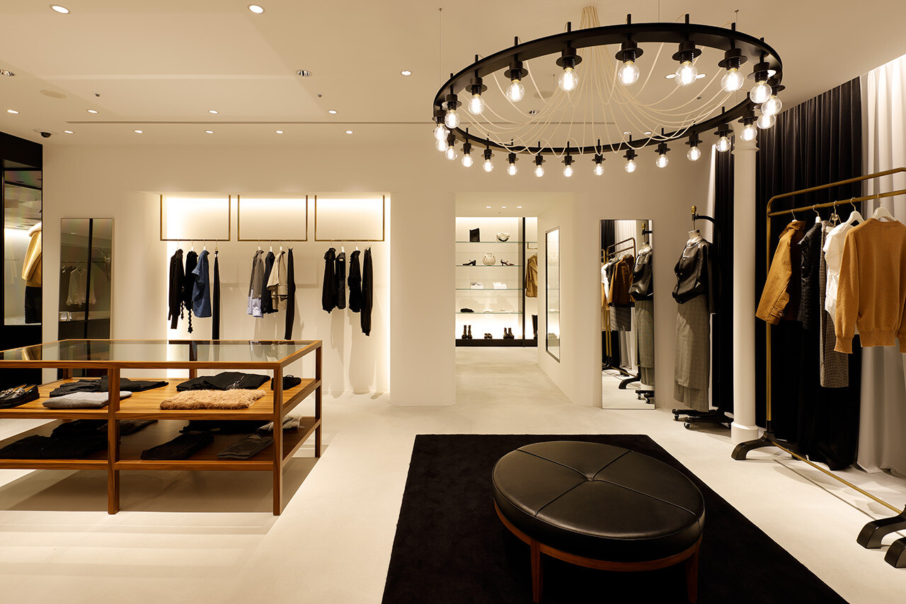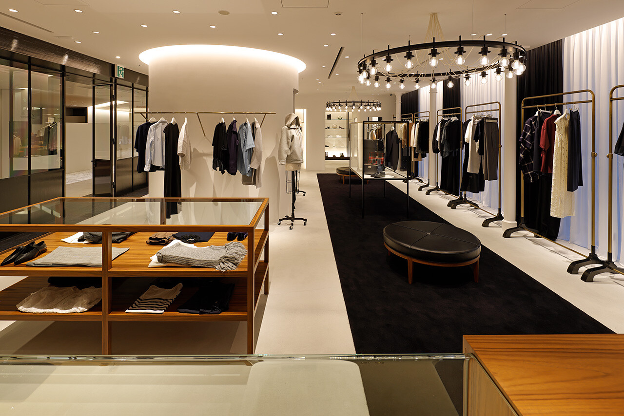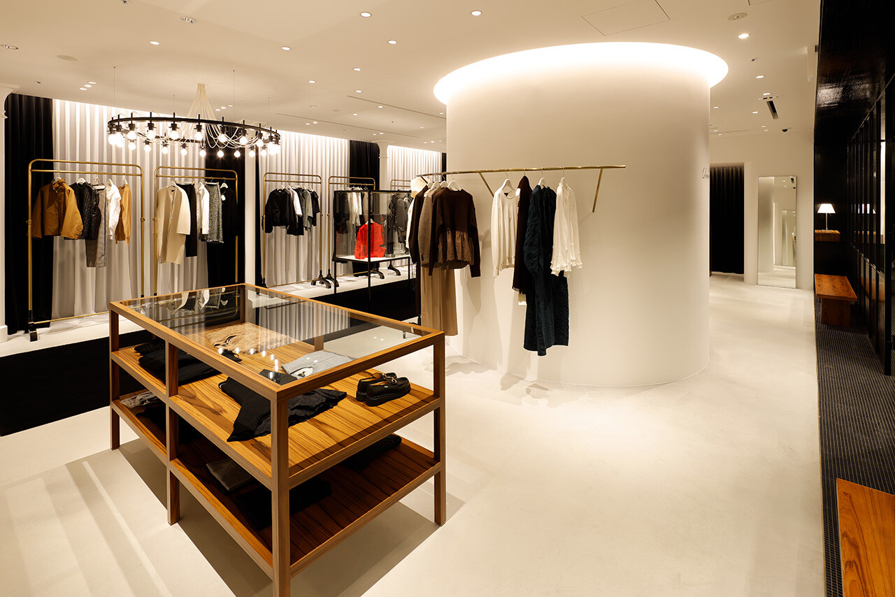 「引き出しの上段に上質なものを入れる」という、英国の古き良き風習を由来とする「DRAWER」。2003年のブランド発足とともに生まれた空間のアイデンティティはそのままに、2025年のLUMINE高輪ゲートウェイ店では、商業モールという環境から距離を置くように、ブティックというよりファッションデザイナーのアトリエの風景をイメージしながらデザインされた。