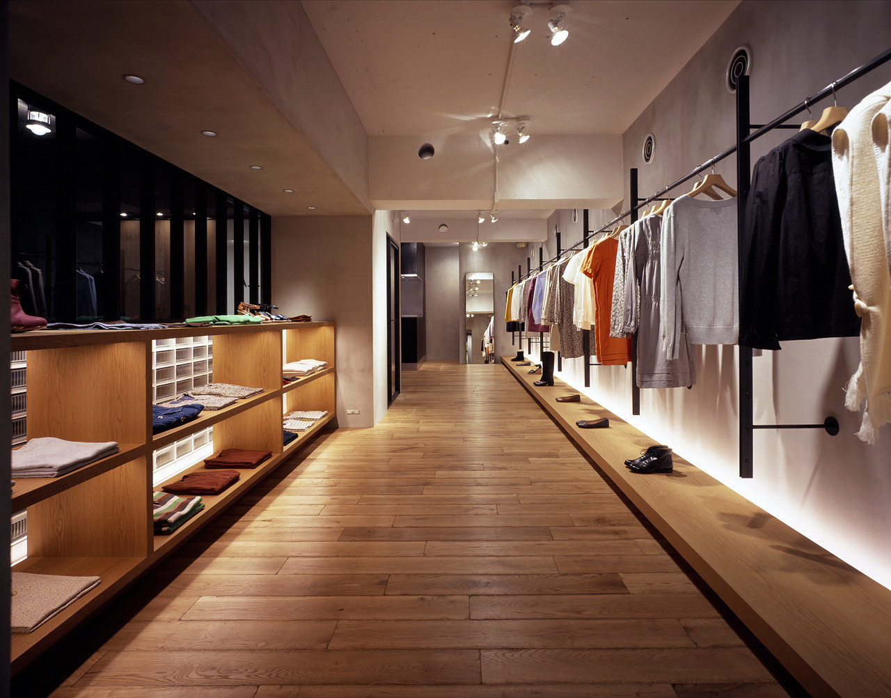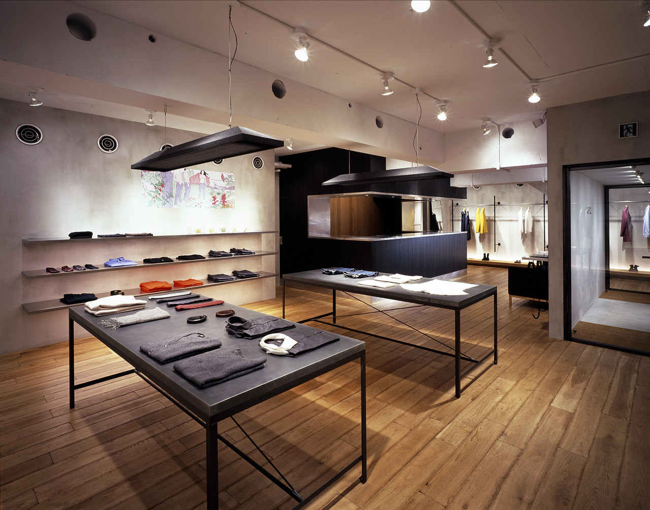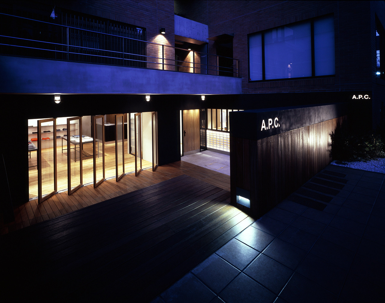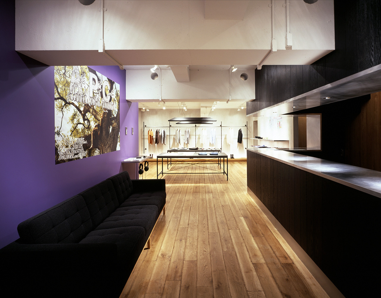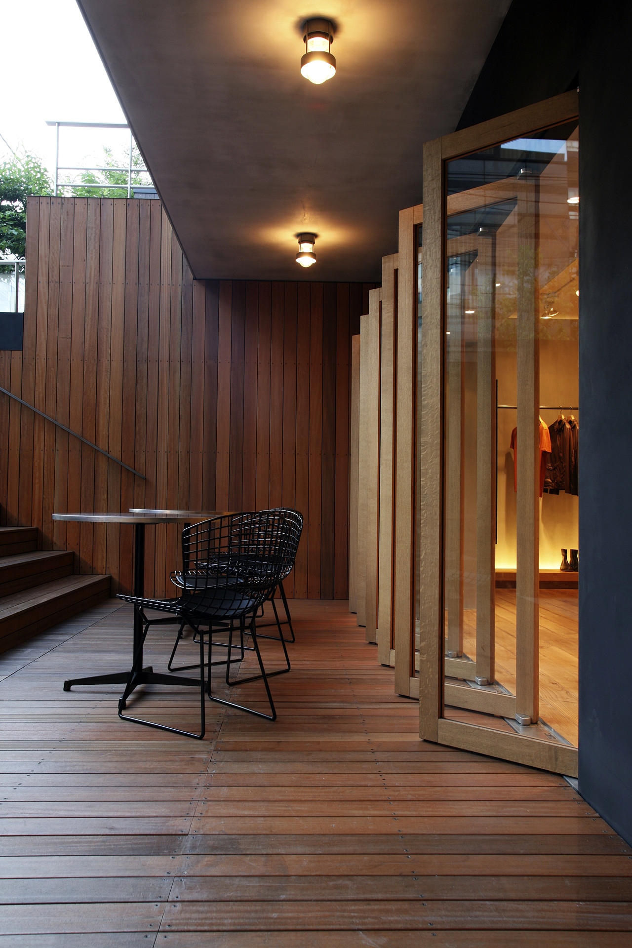 The concept behind this second project with A.P.C. located in Kita-Aoyama is a bungalow style house. The terrace-like entrance and façade breaks the conventional formula of retail store spaces where the focus is about the presenter and the viewer. The store is designed to encourage the interaction between the "A.P.C" brand and the "guests". A calm and soothing environment give the impression of a familiar place that may have already existed for year. This was created by the choices of materials and how they were incorporated in their use.