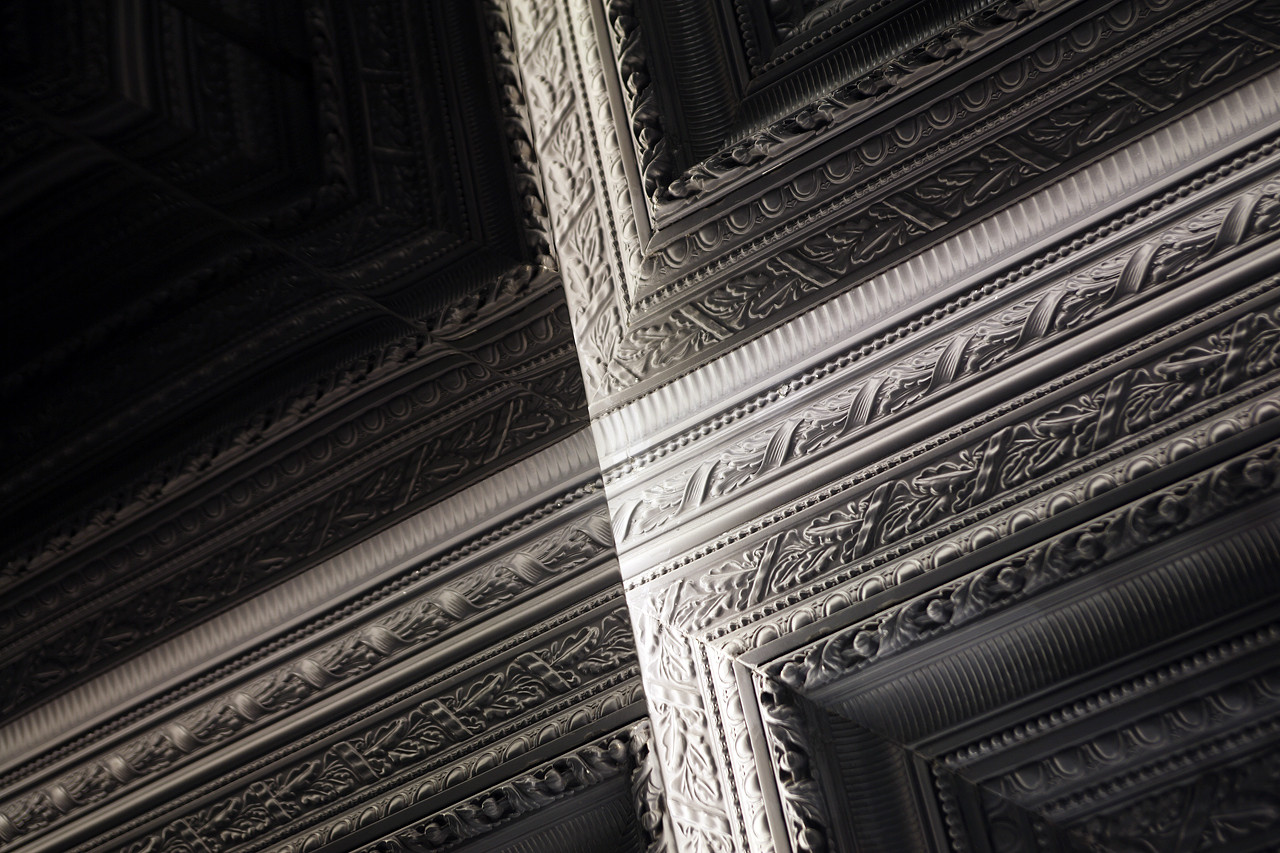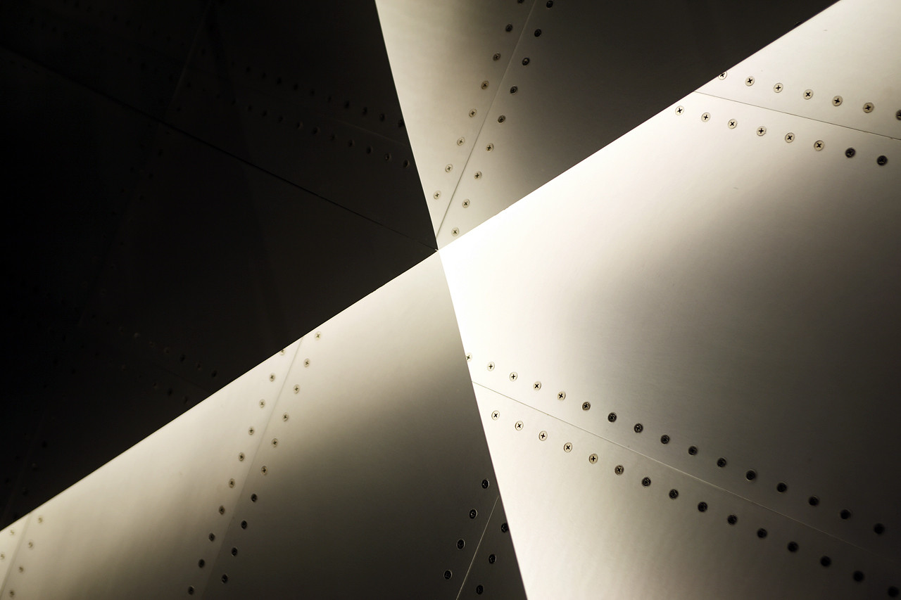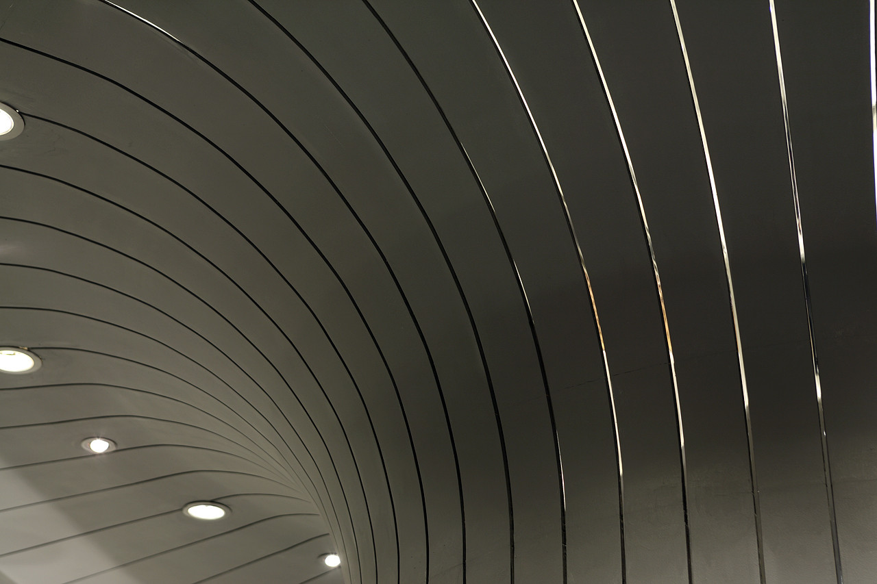 Column in the back of the store. Stainless steels plate radially spreads to the ceiling.