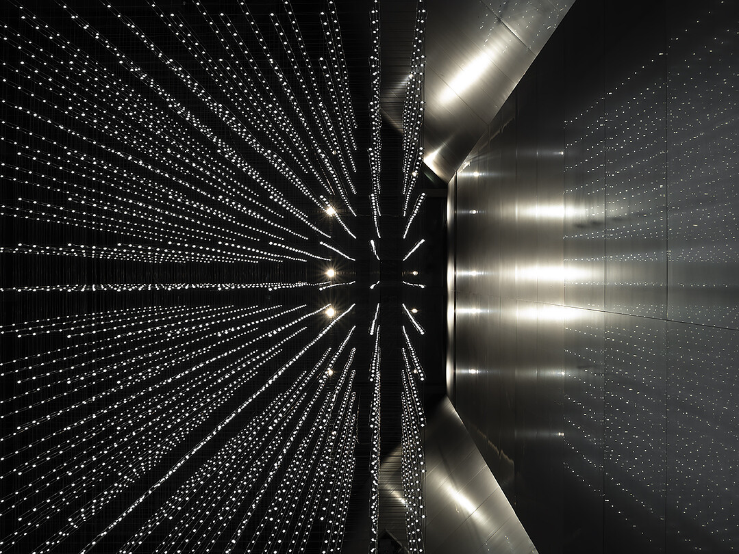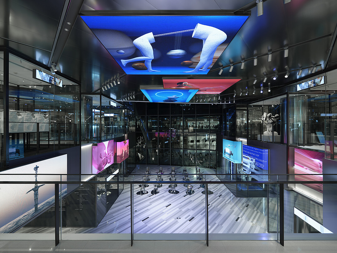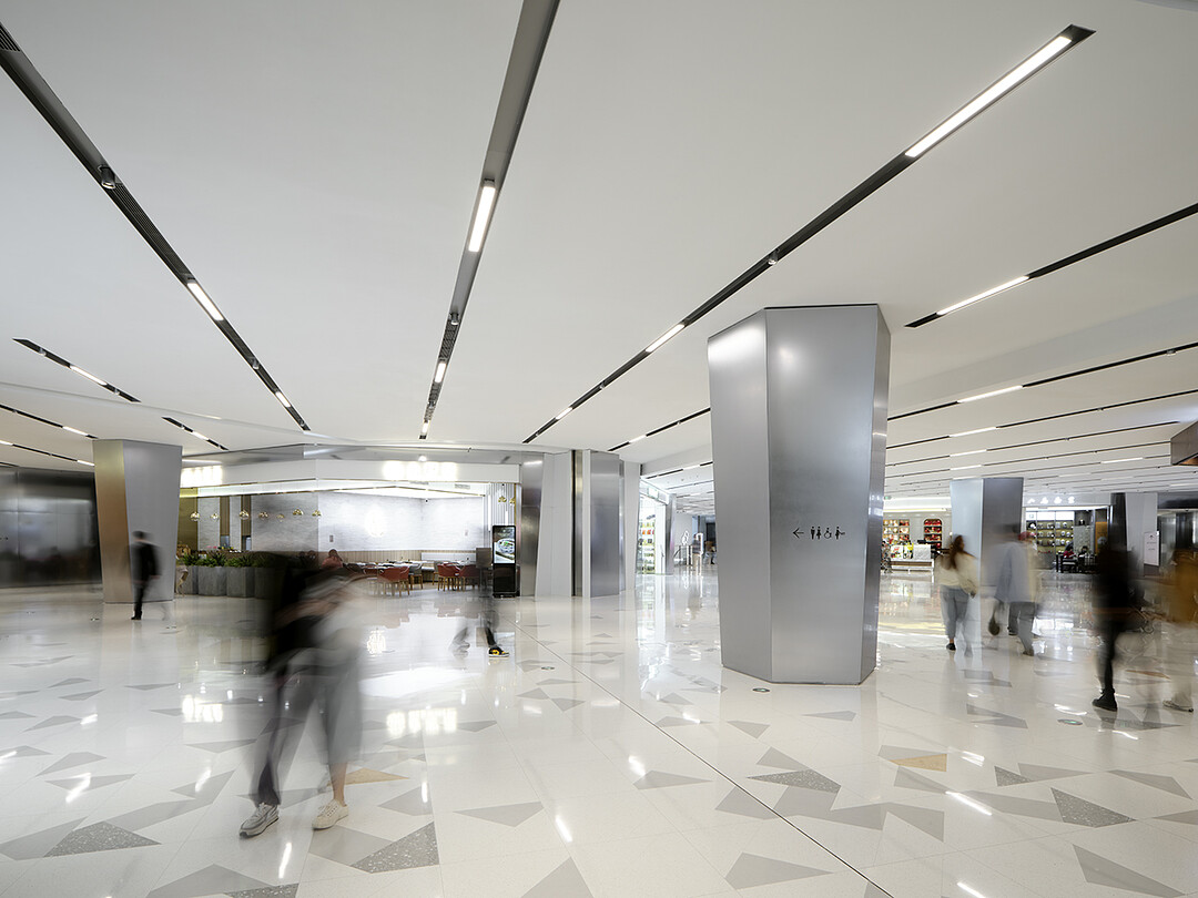 The concept of the interior design is New Gravities: we envisioned a space that has different "gravities" to design a zoning scheme that responds to new values and diversity. The facility is divided vertically into three separate zones, each area having a unique atrium and design that pertains to its particular theme: QUALITY LIFE, NEWS LIFE, and ART LIFE. QUALITY LIFE is designed to have "Relaxed Gravity," featuring soft curves and a combination of natural and synthetic marbles that exude a luxurious atmosphere. NEWS LIFE has ”Fresh Gravity,” where trends are interpreted as pixels. Combining monitors and glass boxes to depict the buzzing interplay of information, this zone is used to host POP UP STORE and other events that are current and trendy. ART LIFE has "Hyped Gravity" with an edgy design that speaks to the senses. The floors also feature a modern interpretation of the parquet flooring found in historic museums. These three zones co-exist on each floor so that the distinctive design of a particular zone fades out and gradually transitions into the next. The "gravity" of each zone becomes intensified as one moves from the edge to the center, enabling visitors to instinctively recognize which zone they're standing in.