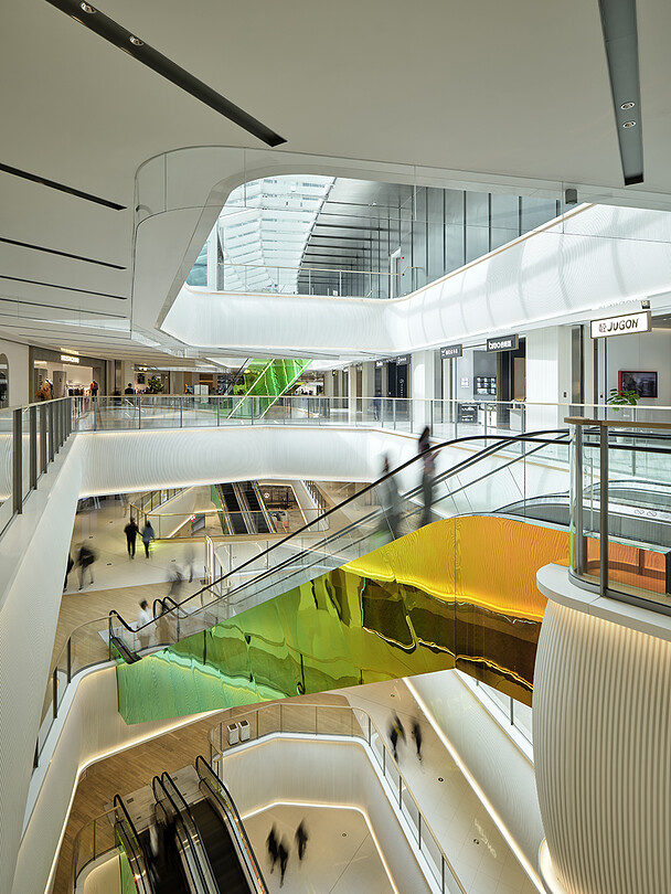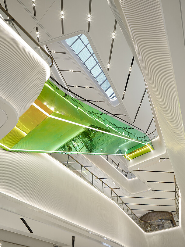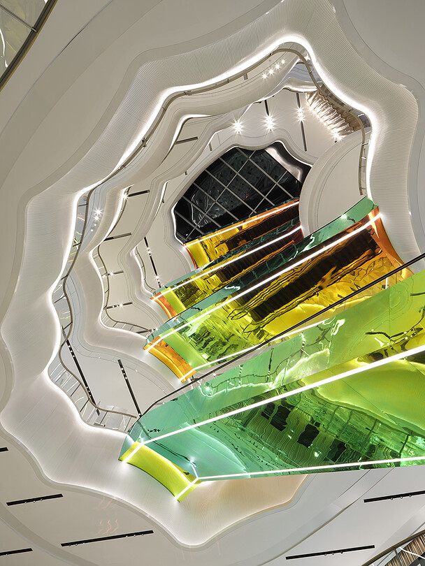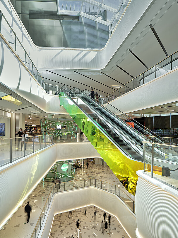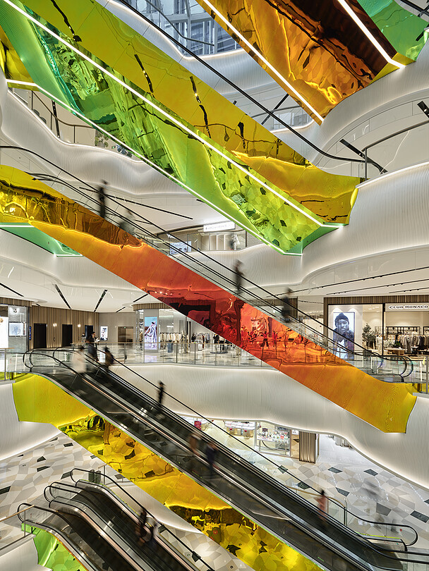 MixC Qianhai is a mixed-use complex in Shenzhen, one of China's four largest cities after Beijing, Shanghai, and Guangzhou. In addition to commercial facilities, the complex also includes offices, high-end residences, and a luxury hotel on a property that expands to 100,000 square meters. Wonderwall was responsible for the interior design of 25,678 square meters of this project, a five-level commercial facility that houses more than 220 brands.