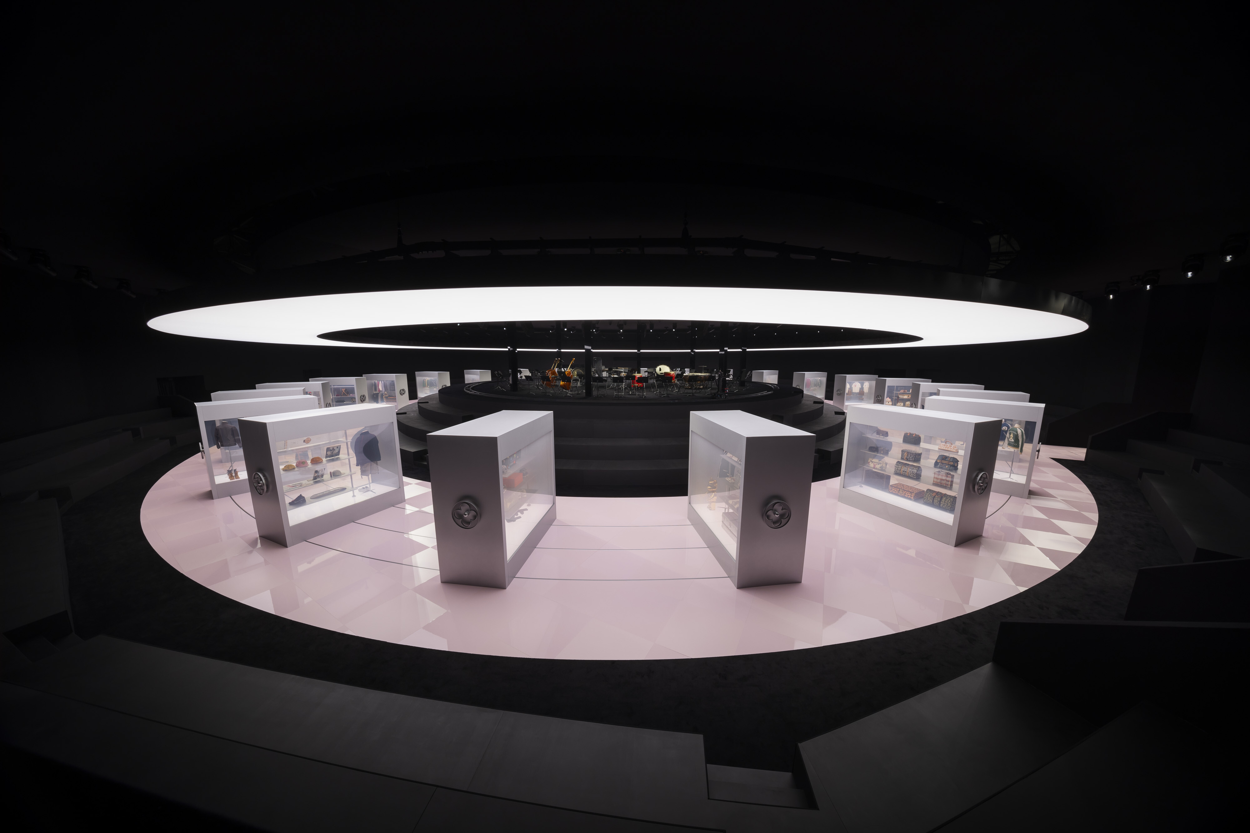 At the entrance, mirrors adorned with a reinterpreted Damier pattern by NIGO®️ reflected the historic architecture. Inside, a circular runway, a ring-shaped illuminated ceiling, and archive boxes arranged in a radial pattern filled the space. These elements showcased the inspirations behind Pharrell, NIGO®️, and Louis Vuitton, while also serving as the backdrop for the show. On the central stage, an orchestral performance took place. Combined with a narrative-driven production, the hybrid spatial design—seamlessly merging the fashion show and archival exhibition—brought to life a one-of-a-kind environment that expressed the concept of “Endless Discovery.”