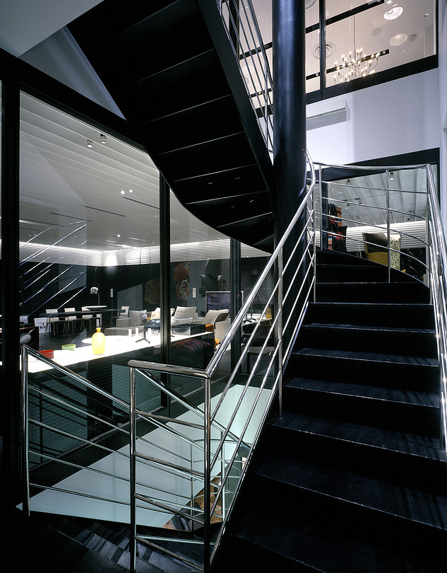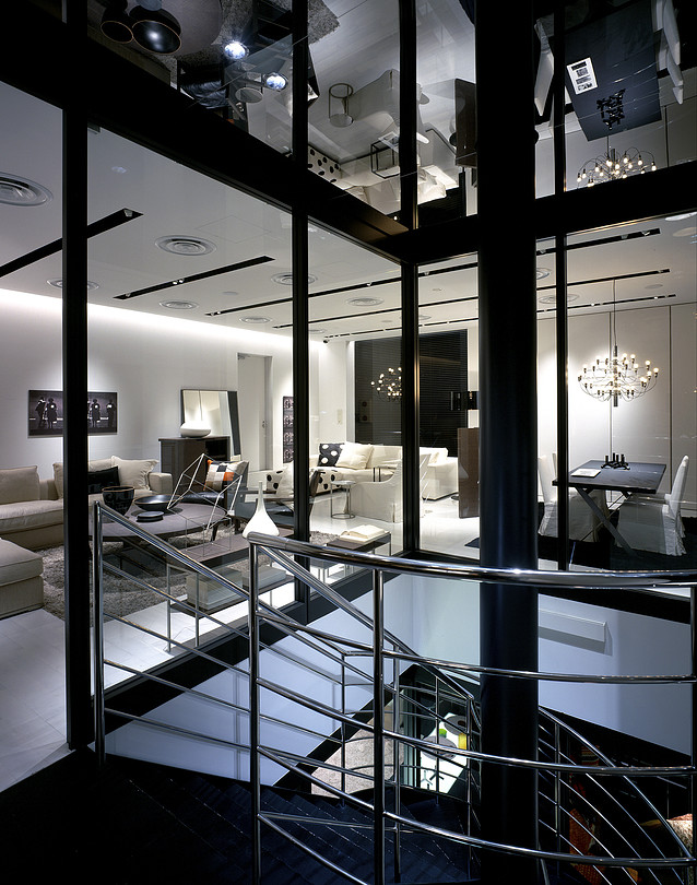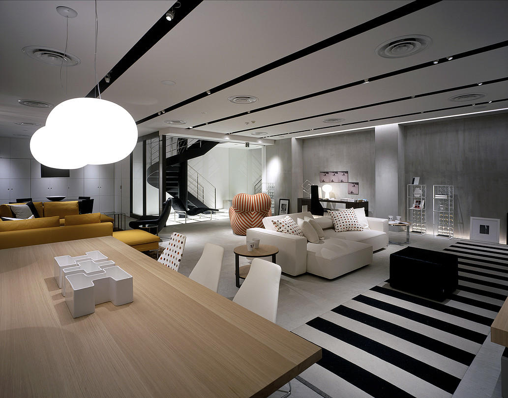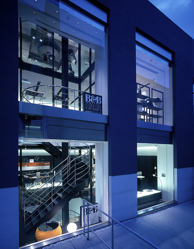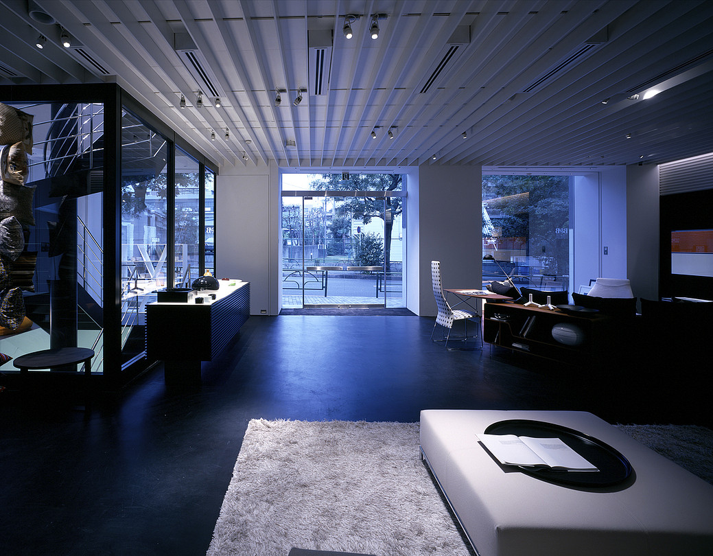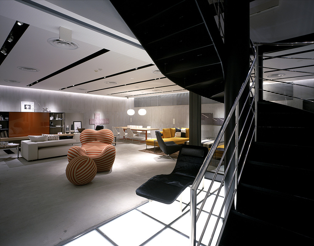 This is the first flagship store in Japan for B&B Italia, the Italian furniture company known for its modern design and manufacturing since its establishment in 1973. The idea was to design a space that resembled a museum-like severty allowing each floor to have a sense of independence with subtle differences in the color scheme. And by opening up the once covered staircase that connects the three floors, a sense of consonance is created.